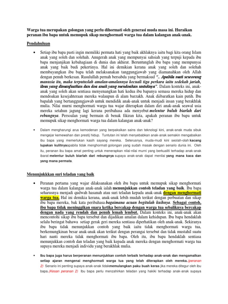Penutup Peranan Warga Tua. Di samping itu aktiviti ini merupakan salah satu cara untuk menghormati dan menghargai jasa orang tua. Contoh Karangan Peranan Ibu Bapa Dalam Mendidik Anak Anak.